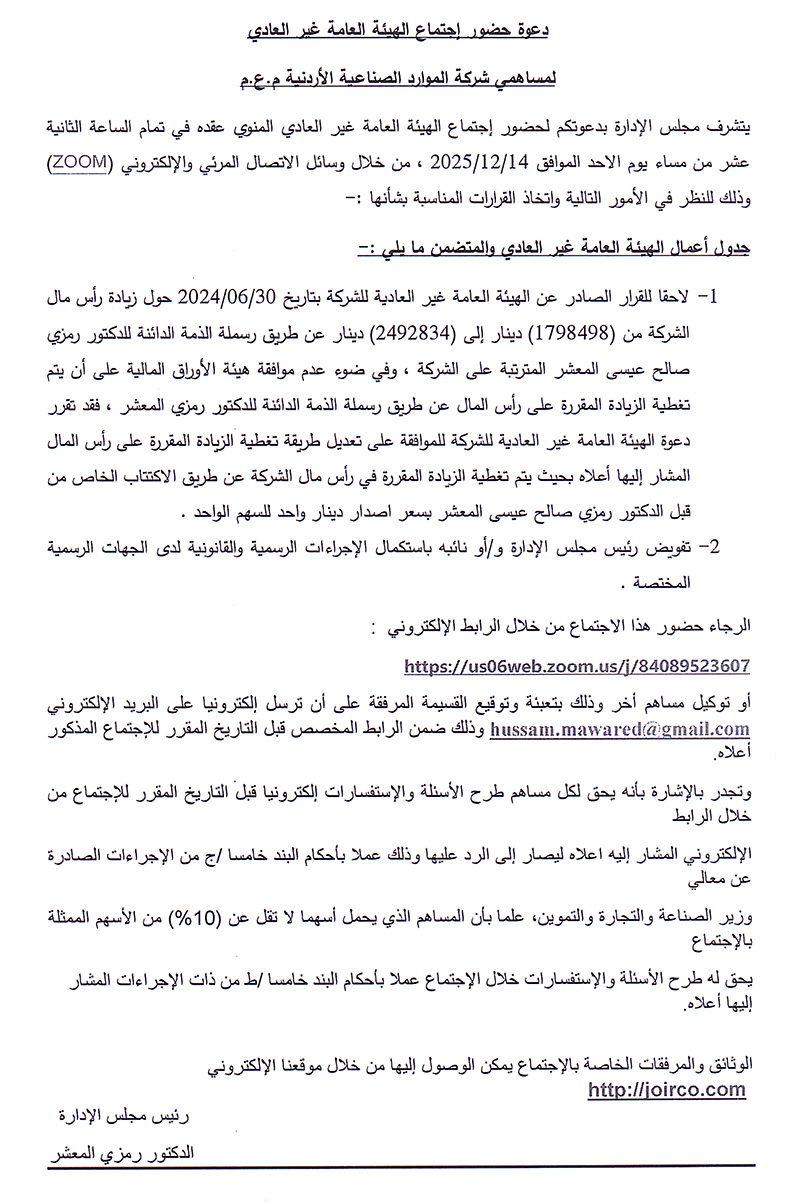 دعوة حضور إجتماع الهيئة العامة غير العادي